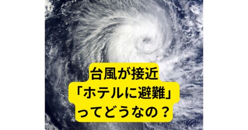 台風が接近、ホテルに避難ってアリ?【まとめ】 今回は台風についてまとめてみました。 目次 台風が接近、ホテルに避難ってアリ?【まとめ】 台風接近、ホテルに避難はどうなの? 台風接近時のホテルへ避難する事は「有り」 ホテルに行けばすべて安心ではな…