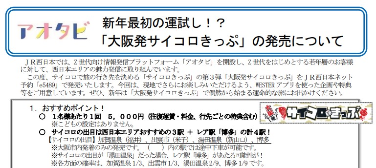 - JR西日本「サイコロきっぷ2023」注意点まとめ
